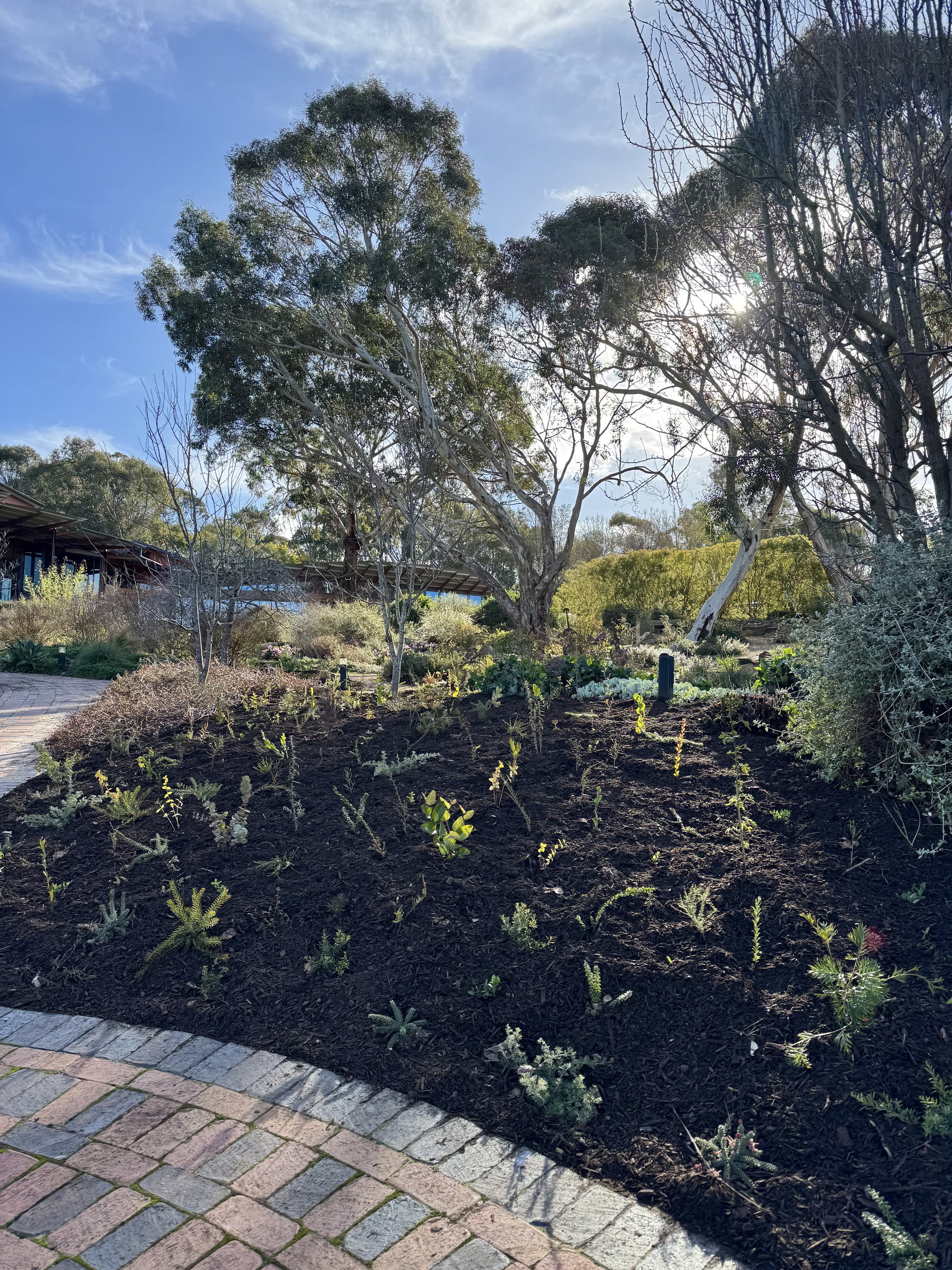 In the central part of the garden, we recently removed large areas of Cornus and other struggling plants with an excavator. We have since replanted this area using a style inspired by the Woody Meadow project from Melbourne University. The approach involves the dense planting of woody groundcovers, shrubs and small trees. We’re trialling about sixty different species to see which perform best in our conditions, with the aim of refining the selection over time.’ Once established, these plants will require little to no irrigation and minimal maintenance. ‘We hope this will add to the beauty of the garden, be robust in our climate, and offer a new area to inspire visitors with planting ideas for their own gardens.’